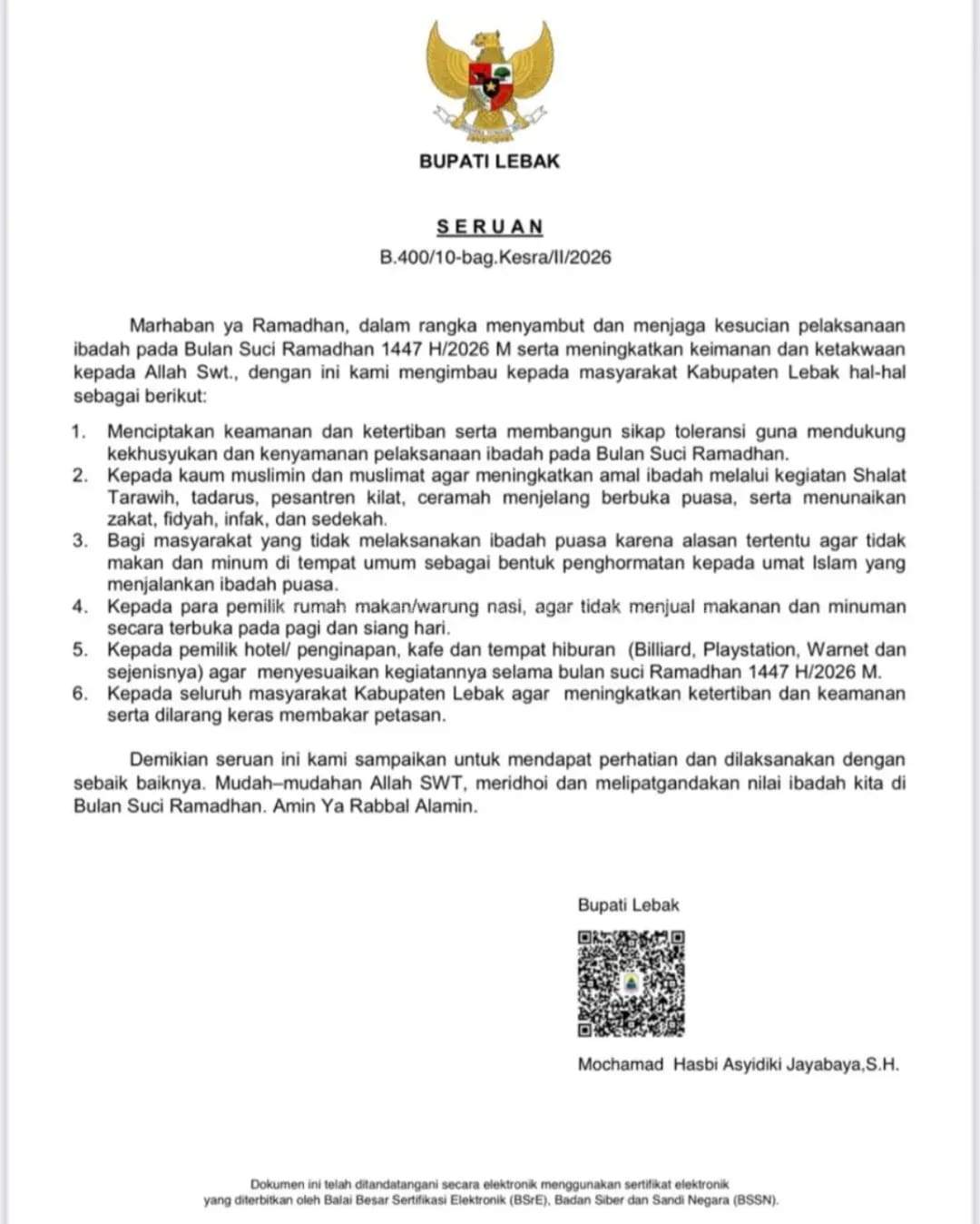Seruan Bupati Lebak